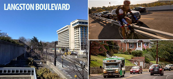 Langston Boulevard, formerly Lee Highway, is a linear corridor stretching across Arlington, lined with low-rise commercial and residential properties. There are Metro stations near each end -- East Falls Church on the west end, and Rosslyn to the east, both served by the Orange and Silver Lines, with transit along Langston Boulevard provided by ART and Metrobus. The Langston Boulevard corridor intersects the W&OD and Custis Trail, and the portion east of Glebe Road is served by Capital Bikeshare. With quiet residential streets on both sides of Langston Boulevard, and with many of the busier streets having on-street bike lanes, the corridor is walkable and bikeable.
